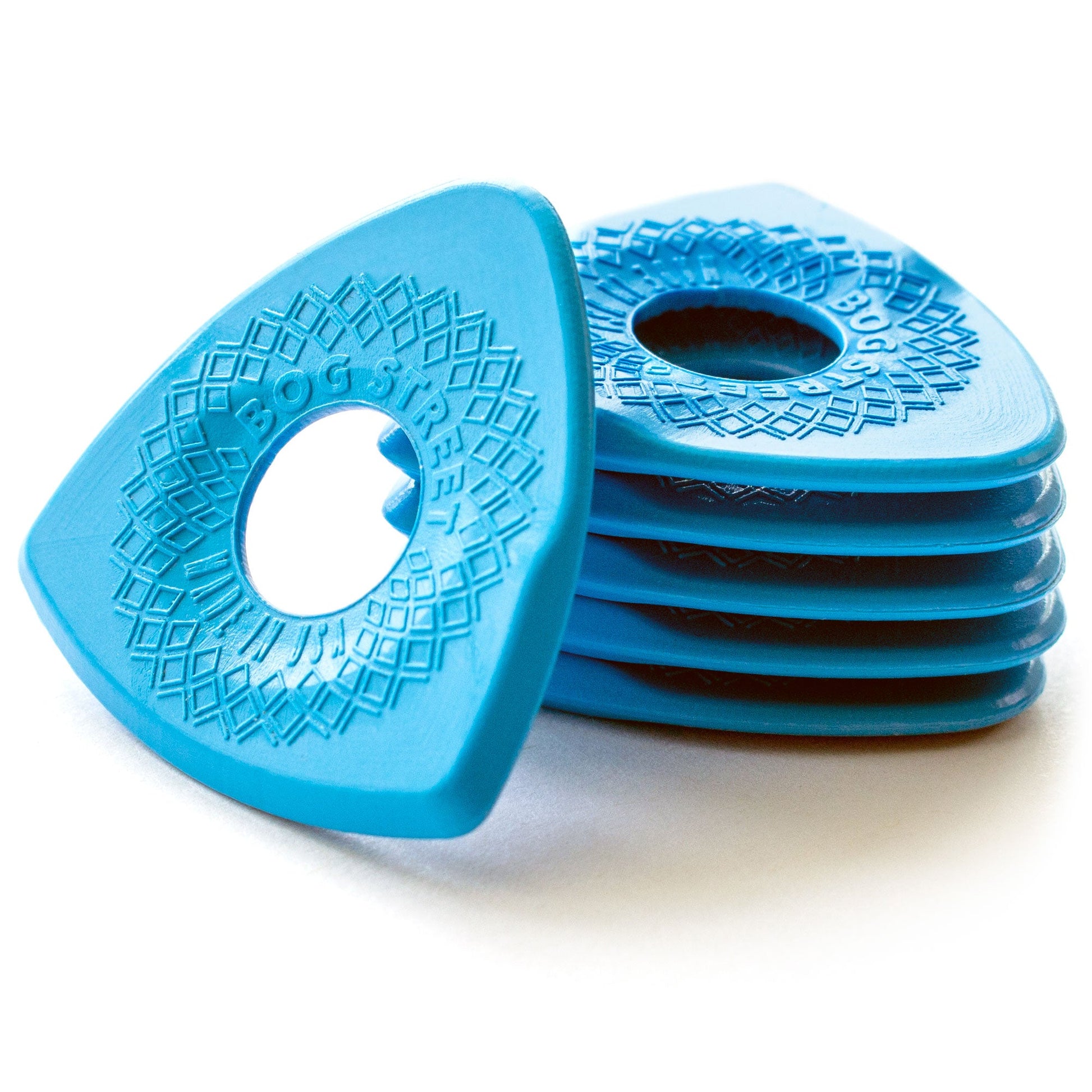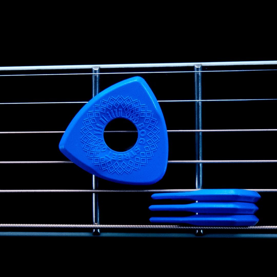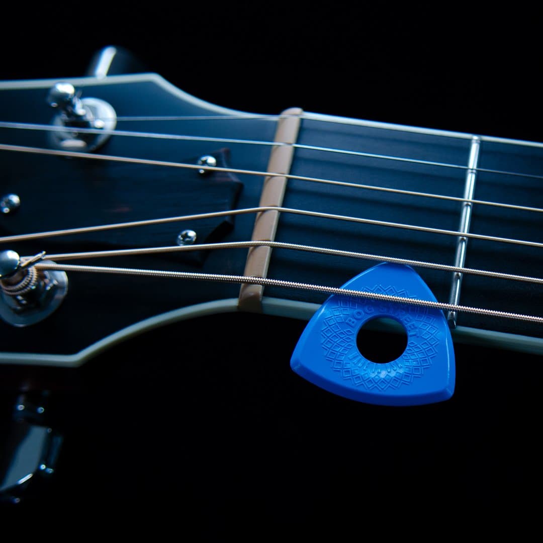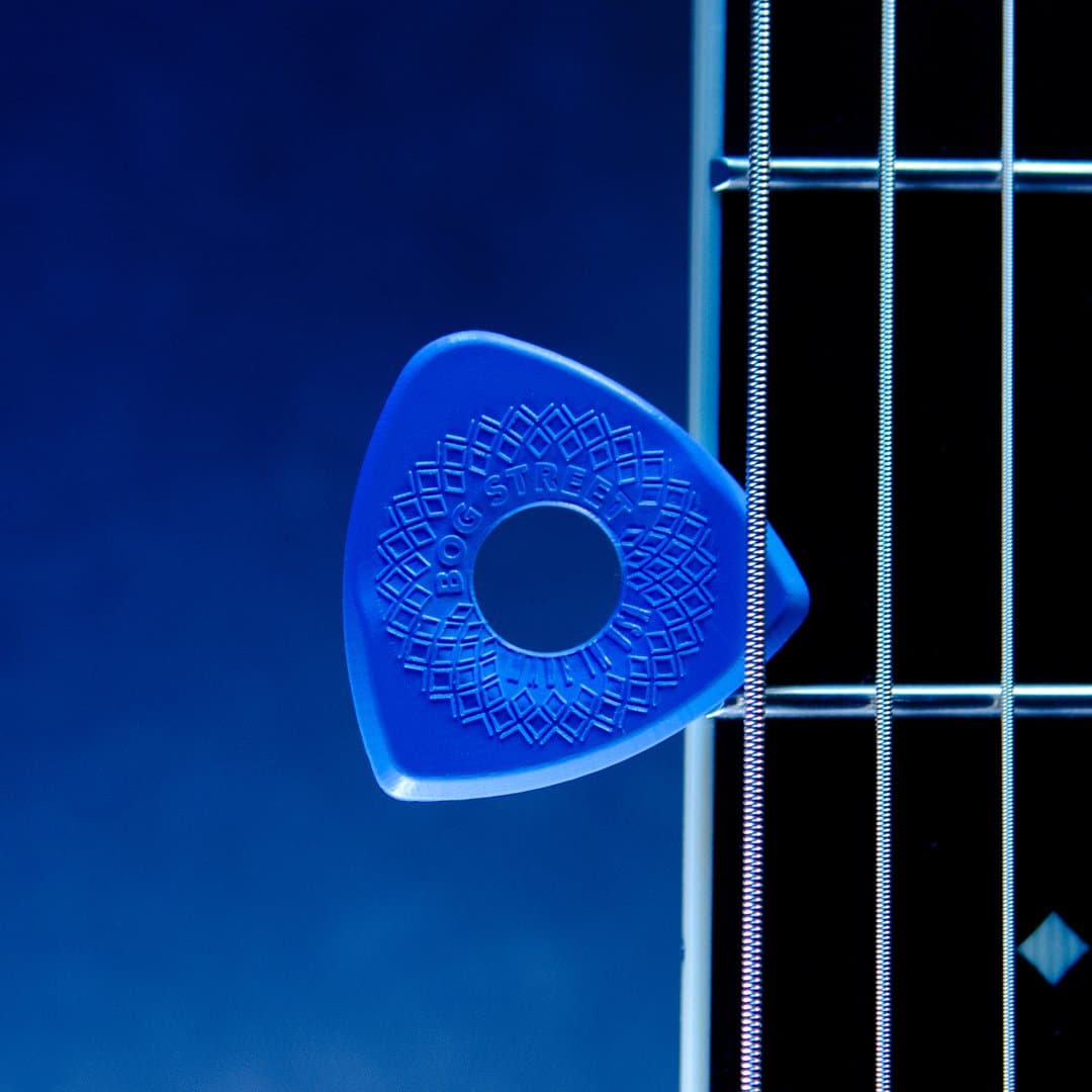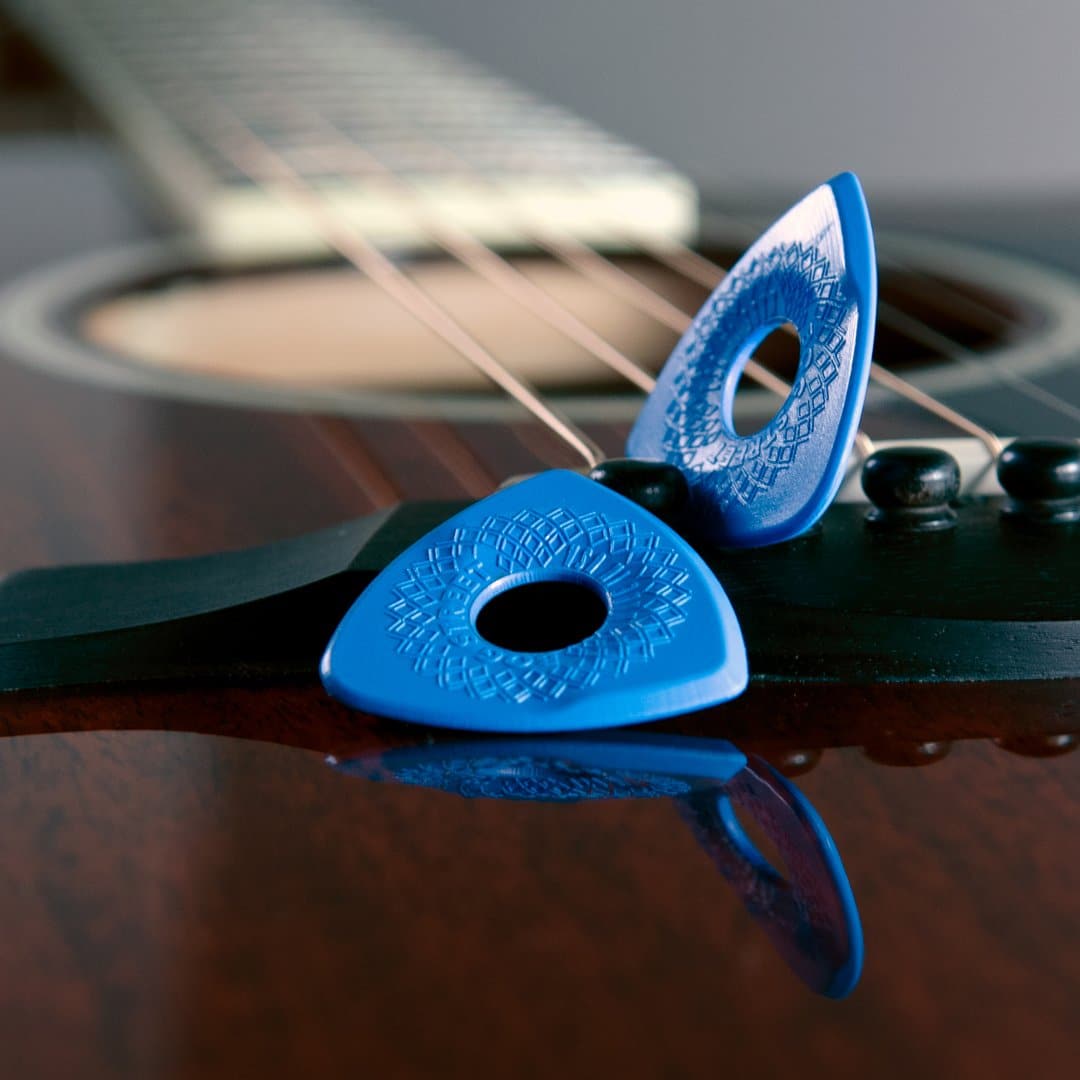 These picks are molded from a high-grade acetal copolymer called Lupital. Lupital is one of the strongest engineering plastics available and is known for its high strength, high impact resistance, and toughness. It creates a warm tone and smooth string release.