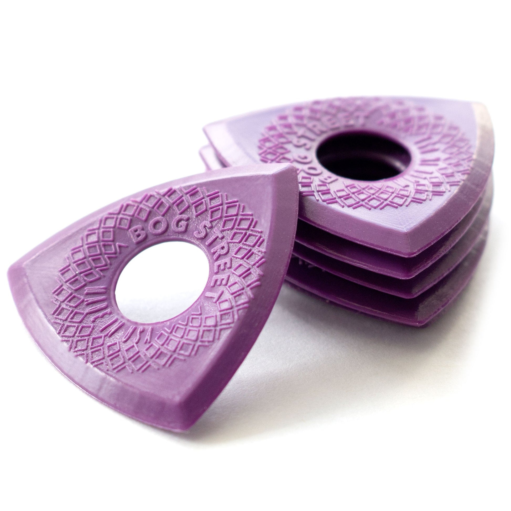 These picks are molded from a high-grade acetal copolymer called Lupital. Lupital is one of the strongest engineering plastics available and is known for its high strength, high impact resistance, and toughness. It creates a warm tone and smooth string release.