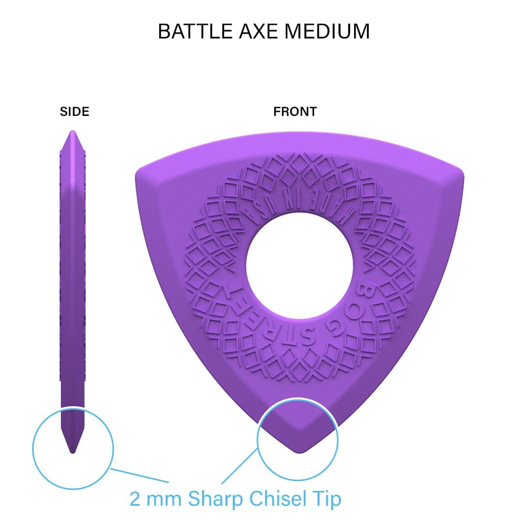 The 3-sided Battle Axe Medium features three 2.0mm sharp chisel tips. This gives players three pick tips geared towards fast and articulate playing.